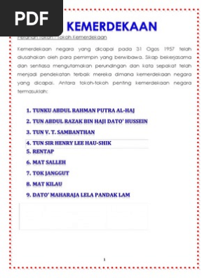 . Download PDF - Tokoh -tokoh Kemerdekaan gen5e1vm35no. Biodata tunku abdul rahman putra al-haj 2. Muhamamdiyah berhasil dalam menyatukan kekuatan dalam perjuangan kemerdekaan Republik Indonesia di Kampar.